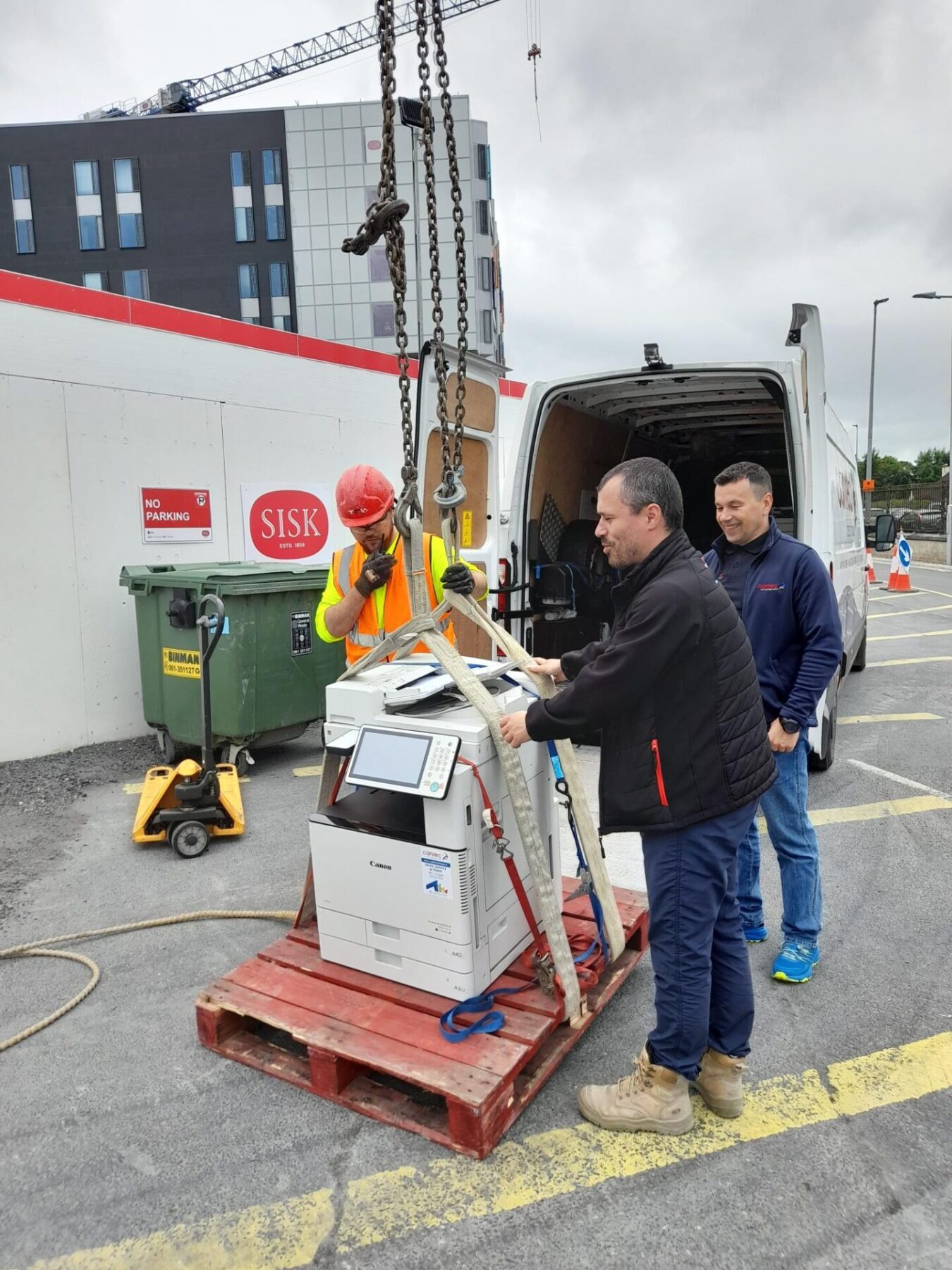 July brought one of our more unique deliveries, a Canon multifunction printer that required a crane lift into University Hospital Limerick for our client, Tyrone Formwork. A perfect reminder that no delivery is too big (or too high up) for our team!